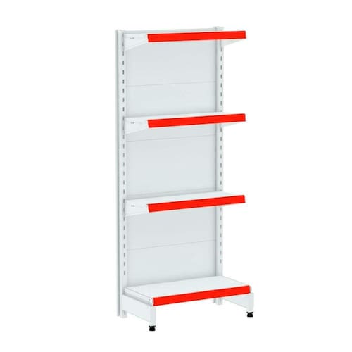 A Gôndola Ponta Premium Flex 40 finaliza ou inicia a fila da gôndola de centro é ideal para supermercados, mercearias, lojas de utilidades, materiais de construção, agropecuárias e outros.