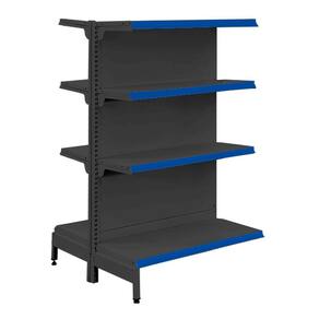 Gôndola Prateleira Preta 4 Níveis 40x30 New Plus 1,40 Central Continuação PE Azul - SA Gôndolas