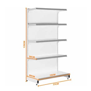 A gôndola possui 5 níveis de exibição, incluindo a base e quatro bandejas.