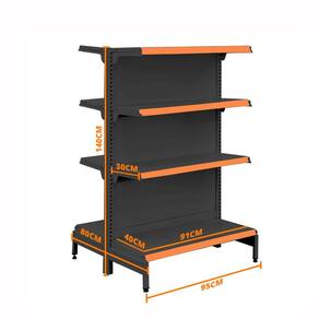 Gôndola Prateleira Preta 4 Níveis 40x30 New Plus 1,40 Central Inicial PE Laranja - SA Gôndolas