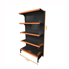 Gôndola Prateleira Preta 5 Níveis 40x30 New Plus 1,70 Ponta PE Laranja - SA Gôndolas