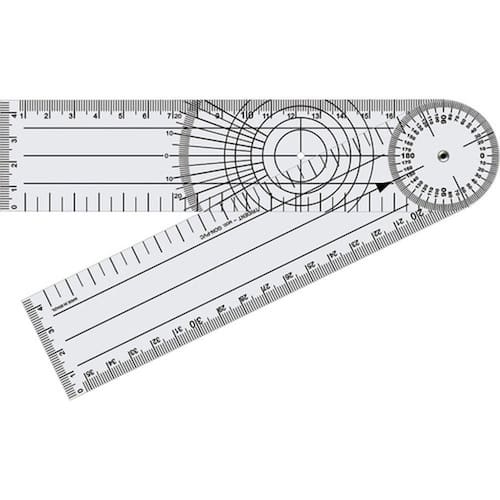 - Produto utilizado para avaliar a amplitude do movimento e a variação da articulação. - A mensuração goniométrica da flexão e da extensão de uma articulação é uma técnica simples e que fornece informações adicionais aos clínicos ou aos pesquisadores quanto ao grau de alteração articular e quanto à evolução pós-operatória de pacientes ortopédicos. - Amplitude de leitura: sistema de transferidor de 0o a 360o; e marcação de 0 a 35 cm (com a régua aberta) - Resolução em graus e milímetros. - Graduação 1 grau e 1 mm - Espessura 0,85 mm - Matéria-Prima goniômetro transparente em PVC