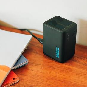 Conjunto com carregador duplo e duas baterias recarregáveis para HERO13 Black. Permite recarregar duas baterias simultaneamente, otimizando tempo e garantindo energia de sobra para longos períodos de gravação.