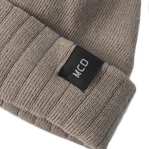 Gorro MCD feito em acrílico, com logo na dobra e etiquetas personalizadas.