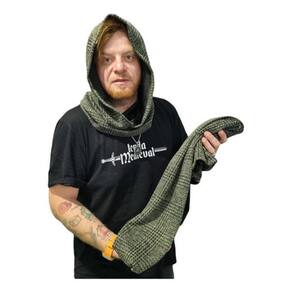 O Gorro Medieval com Cachecol em Malha Tweed Verde é a combinação perfeita de estilo e praticidade. Feito de malha de alta qualidade, o gorro e o cachecol oferecem proteção e conforto, mantendo o visual medieval autêntico. A cor verde profunda traz um toque de elegância, enquanto o tecido suave garante um ajuste confortável e duradouro. O cachecol possui um comprimento de 180 cm, ideal para envolvê-lo de maneira estilosa, complementando o gorro, que mede 68x48 cm.