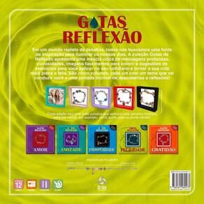 Em um mundo repleto de desafios, todos nós buscamos uma fonte de inspiração para iluminar os nossos dias. A coleção Gotas de Reflexão apresenta uma mescla única de mensagens profundas, curiosidades, imagens fascinantes para colorir e sugestões de exercícios para você aplicar no seu cotidiano e tornar a sua vida mais plena e feliz. São cinco volumes, cada um com um tema que vai conduzir você a uma jornada incrível de descobertas e reflexões! Cada edição traz uma linda pulseira que vem em uma caixinha multiuso para ser usada, por exemplo, como porta-joias ou porta-retratos!
