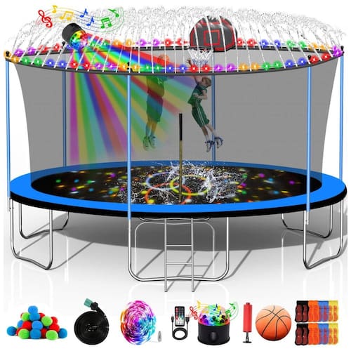 Salte para se divertir e se exercitar Saltar é uma ótima maneira de queimar calorias enquanto se diverte muito. Pode melhorar a força, densidade óssea, agilidade, equilíbrio e coordenação do seu filho. Com o trampolim grande, seus filhos também podem ficar longe dos eletrônicos. Trampolim resistente para crianças e adultos A estrutura utiliza aço reforçado com uma junta em T, tornando o trampolim grande uma base sólida e rígida e um salto mais suave e impressionante e uma carga pesada para crianças e adultos. A estrutura resistente à ferrugem oferece uso a longo prazo. A rede é forte e de boa qualidade. Uso interno e externo Além do exterior, este grande trampolim para crianças também pode ser em ambientes internos, mesmo que esteja chovendo, seus filhos também podem se divertir dentro de casa. A cesta de basquete recreativa adiciona muita diversão para seus filhos. Especificações Peso máximo de carga do trampolim de 16 pés 1.500 libras, para 8 a 10 crianças, limite de uma única pessoa 264 libras Peso máximo de carga do trampolim de 15 pés 1.400 libras, para 7 a 9 crianças, limite de uma única pessoa 264 libras Peso máximo de carga do trampolim de 14 pés 1.200 libras, para 6 8 crianças, limite de pessoa ÚNICA 264 libras Trampolim de 12 pés Peso máximo de carga 1000 libras, para 4 6 crianças, limite de pessoa ÚNICA 264 libras Altura do trampolim 8,86 pés Altura da rede do gabinete 5,9 pés Altura da perna 2,95 pés Construção da estrutura Tapete de salto de aço galvanizado resistente à ferrugem com proteção UV Rede de segurança de polipropileno Almofada de mola de polipropileno Molas resistentes a UV Resistente às intempéries Aço galvanizado Certificação ASTM F381 F2225 Aprovado Fácil montagem necessária Sim Informações do pacote O trampolim 16FT 15FT 14 FT virá em 2 caixas de embalagem. O trampolim de 12 pés virá em 1 caixa de embalagem. PS a luz dos acessórios do trampolim com alto falante e outros acessórios NÃO foram colocados na caixa do trampolim. Eles serão enviados separadamente e entregues em sua caixa de correio. Você receberá um pacote pequeno também. Grande capacidade de peso A carga máxima deste trampolim de 12 é de 1.000 libras, pode acomodar de 4 a 6 crianças. Este enorme trampolim para crianças e adultos oferece uma maneira segura e eficaz de se divertir em família enquanto queima calorias e melhora a coordenação geral. Lembre se de que o peso do usuário único não excede 264 LBS, para evitar lesões causadas por força irregular no trampolim Aprovado pela ASTM Trampolim ASTM F381 F2225 Aprovado. Os postes de aço são acolchoados com espuma e mangas, o que pode proteger seus filhos de baterem no poste. O sistema de gabinete possui rede de segurança, acolchoamento protetor para cobrir a mola, ajuda a estabilizar as crianças enquanto elas pulam no trampolim infantil Estrutura de estrutura forte A construção robusta é com juntas em T de aço resistentes à ferrugem, postes de aço verticais, molas aprimoradas de 72 unidades e 6 U pernas fortes em formato, aumentando a estabilidade da estrutura e evitando torções estruturais, mantenha este trampolim de 12 pés com gabinete firmemente plantado no chão enquanto você salta para uma boa saúde Todos os acessórios completos Trampolim Goujxcy de 12 pés A prepara os acessórios que você precisa 1x inflador de bola de borracha, 1x inflador de basquete, 1x escada de trampolim, 1x luzes de trampolim, 1x luzes de discoteca com alto falante, 1x sprinkler de trampolim, 30x bolas de água reutilizáveis, 8x meias 4 pares de meias de trampolim para adultos e 4 pares de meias de trampolim para crianças Fácil de montar Você receberá o trampolim inteiro de uma só vez 1 caixa de pacote. Enquanto o sprinkler de acessórios de trampolim, cordas leves, luz de discoteca com alto falante musical, bola dágua, meias, etc. virão separadamente e em uma pequena caixa. Qualquer problema, não hesite em contactar nos