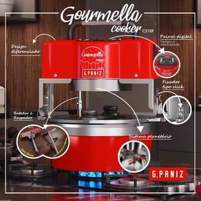 Gourmella Cooker Panela em Alumínio CZ10F G.Paniz. Ideal para confeitarias, cozinhas industriais, hotéis, panificadoras, padarias e similares. Projetada para preparação de brigadeiros, beijinho, massas de coxinha, risoles. Painel digital. Tampa em inox bipartida. Fixador tipo click. Sistema planetário. Acabamentos em polímero de alta resistência na cor vermelha. ATENÇÃO: Acompanha um batedor em aço inox para massas e salgados e um raspador para doces (com silicone vermelho). DIÂMETRO FUNDO PANELA: 300mm. ESPESSURA PANELA: 5mm. CAPACIDADE DE PRODUÇÃO DE DOCE: 12 a 15 latas de leite condensado (até 6kg). CAPACIDADE DE PRODUÇÃO DE MASSA: até 4kg. CAPACIDADE: 10 Litros. CONSUMO MONOFÁSICO: 0,8kWh. POTÊNCIA: 46W. PESO: 10,5kg. DIMENSÕES(CxAxL): 40X45X35,5cm. Equipamento certificado pelo OCP 0070 conforme Portaria INMETRO - 148/2022. Gourmella Cooker Panela em Alumínio CZ10F G.Paniz é na Atau.