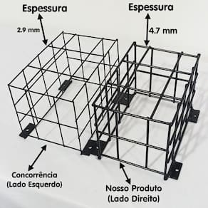 Proteja suas câmeras de segurança com a mais alta qualidade e durabilidade. Nossa Grade Gaiola de Proteção é construída com arame excepcionalmente grosso, superando em resistência os produtos da concorrência. Com essa gaiola, você pode ter a tranquilidade de que suas câmeras estarão protegidas contra danos e vandalismo. Com sua estrutura robusta e firme, nossa gaiola é capaz de resistir a muitos impactos. Não importa o que aconteça, sua câmera de segurança estará protegida em qualquer situação. Tenha a certeza de que seu investimento em segurança está seguro e bem protegido com nossa Grade Gaiola de Proteção. Além disso, nossa gaiola possui dimensões ideais para se adaptar a várias câmeras de segurança. Ela é projetada para ser versátil e fácil de instalar. O arame espesso com uma espessura de 4,7 mm garante a máxima resistência e segurança. Por fim, gostaríamos de ressaltar que a Grade Gaiola de Proteção para Câmera de Segurança Resistente não acompanha buchas e parafusos, pois sua necessidade pode variar dependendo do tipo de instalação desejada. Proteja suas câmeras de segurança com confiança e segurança incomparáveis. Invista na qualidade e durabilidade da nossa Grade Gaiola de Proteção para garantir a integridade das suas câmeras.