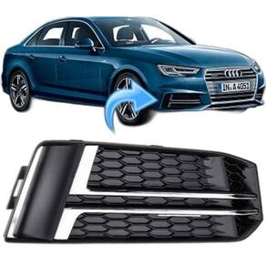 Grade Moldura do parachoque dianteiro, com moldura com detalhe cromado, como na foto Foto 2 Lado Direito Passageiro , para veiculos sem o farol de milha Aplicação: Audi A4 e A4 Avant 2.0 Tfsi Ambition S Tronic B9 - 2017, 2018, 2019 Moldura com cromado, como na foto 2 Código: 8W0807682F de 3 meses Marca: Não Informado