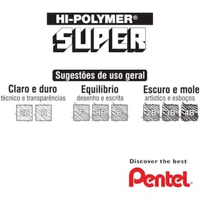 As grafites Hi Polymer Super são cargas desenvolvidas para proporcionar resistência e suavidade na escrita e são utilizadas em todas as lapiseiras da Pentel e outras.