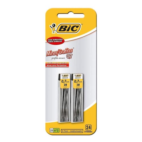 Grafite Médio Bic Minas Grafites Hb 0,7 Mm Cartela 24 Un