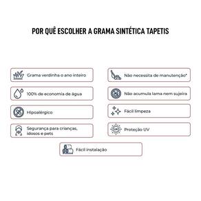 - Não cria acúmulo de água, ela escorre lentamente pelo fluxo. - Longa vida útil e baixo custo de manutenção. - Proteção de raios UV - Proteção Anti Fungos - Pode ser usada em qualquer clima, no frio, calor ou chuva. - Espessura 20mm base+fio - Largura do rolo 2,00 m
