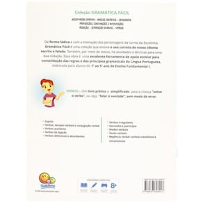 Esta coleção traz um jeito fácil e divertido de aprender acentuação, separação silábica, ortografia, verbos, análise sintática e técnicas para uma boa redação. Com personagens e situações criativas, este é um bom material de apoio escolar. Com esta coleção, a criança vai assimilar as regras usadas para acentuar as palavras oxítonas, paroxítonas e proparóxitonas de um modo interativo, por meio de brincadeiras simples e divertidas. Ela oferece também um método prático, bem-humorado e eficiente para provar que a análise sintática é apenas um nome pomposo para uma matéria que nos mostra como funcionam as palavras nas orações. Vamos, então, aproveitar o melhor que elas nos oferecem! ... Qual é a receita de sucesso deste livro? É ser bem explicadinho, sem ser chatinho. Mas como? Abordando tudo sobre o assunto de um modo direto, prático e simplificado, com boas doses de humor e criatividade. O texto, as ilustrações e a edição foram feitos com primor e, principalmente, com o intuito de ajudar o professor em seu trabalho. "Soltar o verbo" é uma expressão que significa "falar à vontade, desabafar". Este livro traz toda as regras e dicas para que o aluno do 5º ao 9º ano possa soltar o verbo sem medo de errar. Marca: TODOLIVRO*