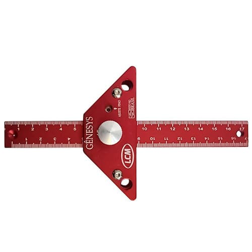 Com um comprimento de 15cm, o modelo Gênesys oferece ajuste fino, permitindo um ajuste mais firme da haste e a opção de risco em 45 e 90 graus. Essa versatilidade possibilita a realização de diferentes tipos de marcações com precisão e rapidez.