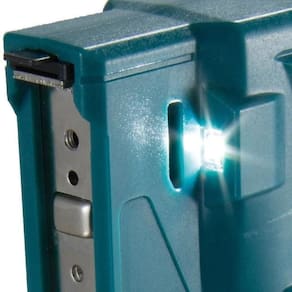 O Grampeador DST112Z da Makita é capaz de aplicar aproximadamente 6.000 grampos com uma carga de bateria. Possui disparo contínuo e intermitente, indicador do nível de bateria e iluminação de trabalho.