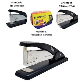 • Grampeia até 30 folhas; • Usa grampos 24/6 e 26/6; • Moderno, resistente e prático.