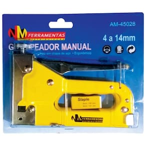 Grampeador Manual de Tapeceiro Grampo 4 - 14 mm - NM Ferramentas - Grampeador de tapeceiro - Fabricado em aço - Equipado com ajuste e profundidade de cravar - Utilizado com grampos para fixar materiais finos em folha na base de madeira ou aglomerado - Indicado para grampos Tipo 53 - Altura do grampo: 4 - 14 mm Ficha técnica - Modelo: AM-45028 Marca: Não Informado