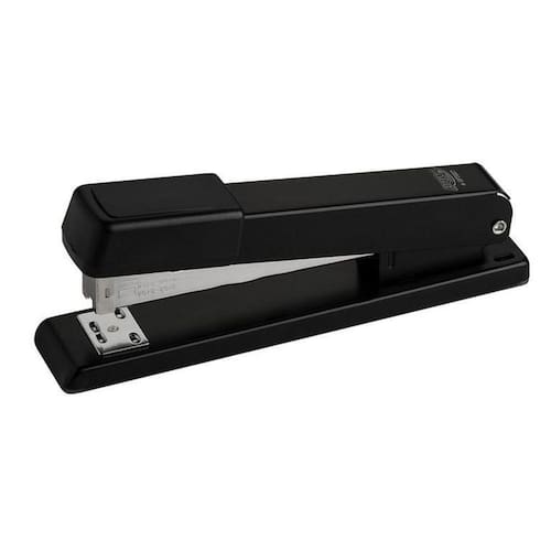 Grampeador com estrutura metálica, base plástica com fechamento de grampo com duas posições (grampo fechado ou aberto), em aço, com acabamento niquelado. Detalhes: 45 Folhas 19cm Grampos 24/6 , 24/8, 26/6, 26/8 . Metálico