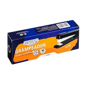 Grampeador com estrutura metálica, base plástica com fechamento de grampo com duas posições grampo fechado ou aberto , em aço, com acabamento niquelado. Detalhes: 45 Folhas 19cm Grampos 24/6 , 24/8, 26/6, 26/8 . Metálico