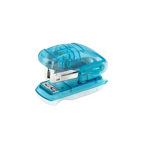 Grampeador Plástico Mini 10 Fls Base 6cm BRW - Translúcido - Cores: Azul