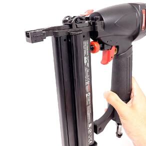 Modelo: SF5040RC Dimensâo: Z83 x 256 x 60 mm Peso: 1,6 kg Pressâo de operação: 70-110 PSI 4,8-7,5 bar Pressâo máxima: 120 PSI 8,3 bar Capacidade de carga: 100 Peças Grampo: 5,7 x 1.05 mm Pino 1,Z5 X 1,00 mm