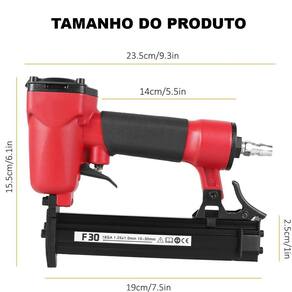 Grampeador pneumático profissional grampos 10 à 22 mm f30 Nome do produto: grampeador pneumático profissional grampos 10 à 22 mm f30 Qs261 rebitadeira pneumatica de uso manual acondicionados em caixas contendo 20peças por caixa.Ndicionados em cai