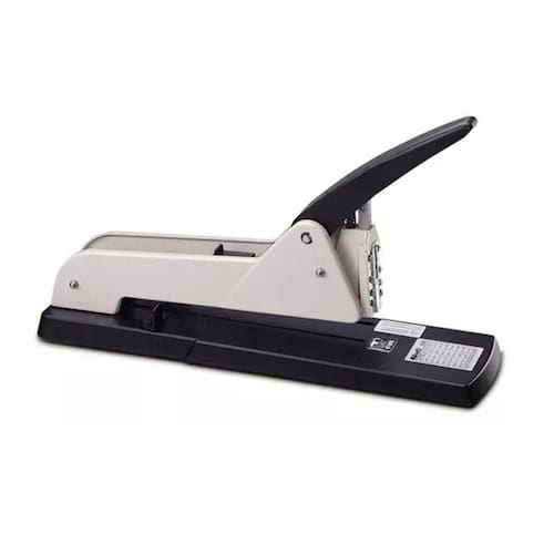 Grampeador de longo alcance, modelo 5000. Este grampeador profissional possui corpo e estrutura em metal, proporcionando a força necessária para grampear até 200 folhas de maneira ágil e prática. Possui ajuste de profundidade de até 25 cm e capacidade para armazenar até 200 grampos.