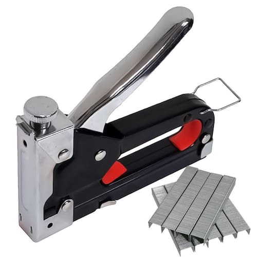 Grampeador Para Tapeceiro 4 A 14Mm Metálico Com 2.000 Grampos Grampeador para Tapeceiro 4 a 14mm5WK Eda + 2.000 Grampos O grampeador profissional é ideal para trabalhos em tapeçaria, estofados, montagem de cenários, decorações, festas infantis, serigrafia, artesanato, tela de pintura, silk, dentre outros - Marca: Eda Profissional - Modelo: 5WK - Kit exclusivo com 1.000 grampos de 8mm e 1.000 grampos de 10mm - Grampos Retos de 4 a 14mm - Alta Pressão - Controle da Mola - Acompanha 50 grampos - Útil para revestir madeiras com tecidos, etc - Fácil manuseio - Corpo em Aço - Dimensões: 19 x 16 x 3 cm - Peso: 550 gramas - : 90 dias Aplicações: - Tapeçaria - Fixação Forros, Telas mosquiteiros - Fixação Cartazes escolas, supermercados, etc - Serigrafia - Marcenaria - Vitrinismo - Hobby - Cartonagem - Embalagem agricultura, etiquetas de identificação de embalagem - Decoração festas infantil, eventos sociais Marca: Não Informado Ean: 7796717932613