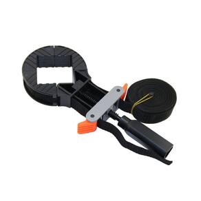 Grampo Sargento com Tensor de Cinta 4 metros de comprimento e 24 mm de largura. Com 4 ângulos para ajustar peças de forma irregular. Ideal para esquadrejar e posicionar quadros, gavetas e molduras.
