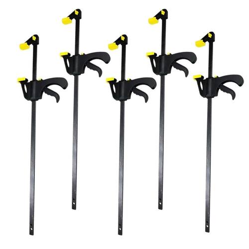 Seu design ergonômico e gatilho de liberação rápida permitem ajustes ágeis e seguros, sem necessidade de grandes esforços. Fabricado com materiais de alta resistência, o grampo oferece durabilidade e força para aplicações profissionais e domésticas.