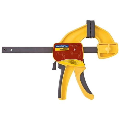 Grampo De Ação Rápida 6"" - 43194006 - Tramontina Grampo De Ação Rápida 6" - 43194006 - Tramontina Grampo de Ação Rápida 6 - 43194006 - TRAMONTINA Descrição: Manter materiais pressionados nunca foi tão prático. Com o Grampo de Ação Rápida 6 polegadas da Tramontina graças a seu corpo em polipropileno e mandíbulas em borracha você terá mais facilidade no desempenho do seu trabalho. A ferramenta possui um gatilho de pressão para otimizar a fixação durante colagens, perfurações e montagens de peças. O seu design ergonômico oferece uma mandíbula que pode ser usada em posição invertida, dando mais praticidade na execução das atividades. Com o revestimento em polipropileno você terá um produto ainda mais resistente.