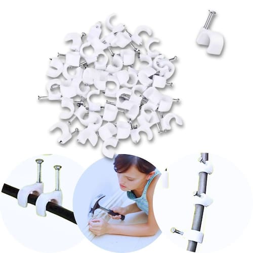 Cartela com 50 peças Cor: Branca Grampo curvado de 10mm Produzido em aço de alta resistência Ideal para fixação de fios e cabos Fácil aplicação com martelo