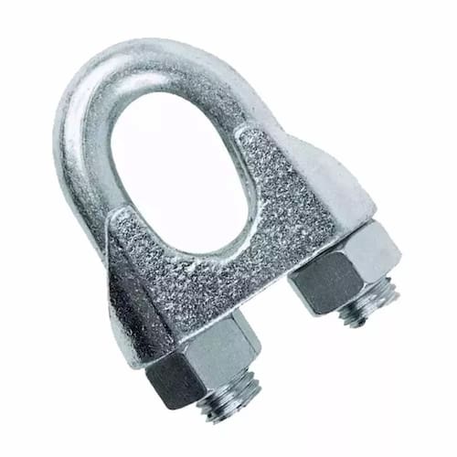 Grampo para cabo de aço tipo pesado é fabricado em aço carbono galvanizado. Aplicado na construção de laços e amarrações em cabos de aço ou cordoalhas que exigem alto nível de resistência à tração e em condições severas de uso. Tamanho 5/16" 8mm Capacidade de Torção: 9,48Kgf/m2 Pacote com 50 Unidades. Ref. 07015038 Marca: Starfer