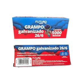 Kit 4 caixas com 5mil grampos em cada Grampo Galvanizado 26/6 Futuro O Grampo Galvanizado 26/6 - Futuro é uma ótima opção para quem precisa de um grampo de qualidade e durável. O grampo é feito de aço galvanizado, o que o torna resistente à corrosão e ao desgaste. Validade: Indeterminada Marca: Futuro Dimensões cm : 4.00 x 3.00 x 11.00 A x L x P Organização e Durabilidade com Grampo Galvanizado 26/6 - Futuro Sua Solução de Escritório Perfeita Resistência para o Dia a Dia Feitos de aço galvanizado, esses grampos são extremamente resistentes, resistentes à corrosão e ao desgaste. Ideal para quem valoriza produtos de longa duração e quer garantir que seus documentos estejam sempre bem presos. Praticidade e Versatilidade As dimensões compactas Confiança e Segurança Com a marca Futuro, você tem a de adquirir um produto desenvolvido para atender às suas expectativas de qualidade e desempenho. Garanta o Seu Agora Não perca a oportunidade de otimizar seu ambiente de trabalho. Adquira os grampos galvanizados 26/6 e experimente a diferença de um produto confiável e eficiente na organização de seus documentos. Marca: Não Informado Ean: 7794447678108