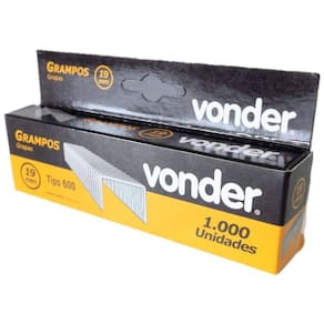 Grampo Vonder de 16 mm para o grampeador/pinador elétrico GPE 916, Conteúdo da embalagem: 01 caixa com 1.000 peças, VONDER 28.98.916.016 Material do grampo para grampeador:Aço carbono Tipo do grampo para grampeador:Tipo 600 Largura do grampo para grampeador:5,7 mm Altura do grampo para grampeador:16,0 mm Medidas do arame do grampo:Esp. x Lar 1,0 mm x 1,25 mm Acabamento do grampo:Zincado