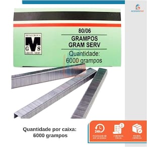 CARACTERÍSTICAS TÉCNICAS: Material: Aço carbono Medidas: 6mm altura x 12mm largura x 0,61mm x 0,94mm espessura Tipo do grampo: Tipo reto Quantidade por caixa: 6000 grampos Marca: Rocama Ref.: 7008708 Ean: 7891638997182