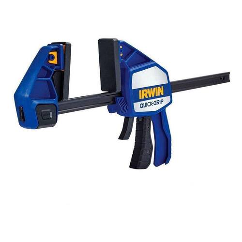 Grampo rápido quick-grip® heavy-duty 12 30 cm ; novo botão quick-change tm converte facilmente o grampo em um expansor; novas mandíbulas rotativas e removíveis; gatilho quick-releasetm que possibilita liberação do grampo com apenas uma mão; barra em formato "i" que aumenta a força de pressão e reduz torção e flexão; apoio ajustável que proporciona suporte adicional para o grampo ficar equilibrado sobre a superfície de trabalho; profundidade da garganta de 92mm; converte para expansor; almofadas protetoras removíveis; sustenta 600 lbs 272 kg de pressão de aperto. Linha - quick grip Tipo - heavy duty Medidas - 12'' Atributos - sustenta 600 lbs 272 kg de pressão de aperto Material - poliamida e aço