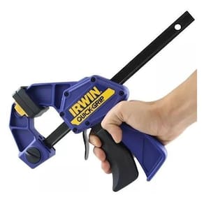 Grampo Rápido Medium Duty 15Cm 6'' Irwin Características: Quick grip Medium duty 6 Sustenta 300 lbs 136 kg de pressão de aperto Expansão 200mm-340mm Poliamida / aço Segurar ou apertar objetos para serem trabalhados, como para fazer acabamentos, cortar, serrar, lixar ou até mesmo fixação para secagem.
