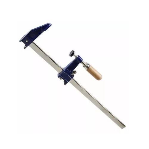 Grampo Sargento 10 Pol. 250mm 1868056 - Irwin - Grampo Sargento para Marceneiro 10POL. 250mm tipo F Irwin; Grampo sargento possui corpo em aço carbono e cabo de madeira para maior segurança e ergonomia do usuário. Conta também com uma trava de segurança que oferece mais conforto e permite ajustes mais rápidos. Almofadas emborrachadas que não danificam seu trabalho. Indicado para utilização em carpintarias e marcenarias, em fixação de peças, montagem de móveis, entre outros. Informações Técnicas: - Comprimento: 350mm; - Largura: 109mm; - Abertura Total: 250mm; - Exerce até: 272kg de aperto; - Corpo em aço carbono; - Cabo de madeira - Mordentes com protetores plásticos; Características Gerais do Produto: Peso Gr : 300g Dimensões: 10X15X45cm : 12 meses Marca: Não Informado