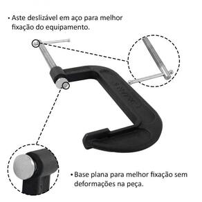 Com uma abertura máxima de 13,5 cm, esse grampo sargento permite prender com segurança diferentes tipos de materiais e peças. Sua cor preta confere um visual moderno e discreto, além de facilitar a localização da ferramenta em sua bancada de trabalho.