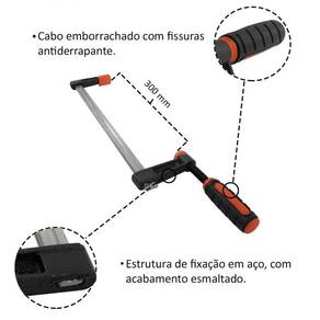 Com dimensões de 8,5cm de altura, 1,5cm de largura e 36cm de comprimento, esse grampo sargento é compacto e fácil de manusear. Sua cor preta e laranja traz um visual moderno e atrativo.