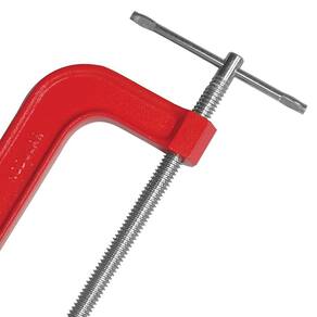 Produto: Grampo tipo C para marceneiro 12 - GC037 Marca: Metalsul Descrição: O Grampo tipo C para marceneiro 12 GC037 da Metalsul é indicado para trabalhos na área de indústrias, marcenarias, serralherias, marmorarias e Outros. Fabricado em ferro fundido Nodular 42012; Fuso em aço 1020 com rosca trapezoidal zincada, a parte do fundido onde se faz a rosca para o fuso é sextavado externo, que auxilia na fixação do mesmo. Acabamento em pintura a pó eletrostática texturizada.Especificações: Ferro fundido Nodular 42012;Fuso em aço 1020N 12Abertura útil: 315 mmAlcance: 100mm. Marca: Não Informado