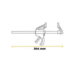 Capacidade máxima de abertura: 12" - 304 mm Material da haste do grampo: Metal Material do cabo do grampo: Plástico Massa aproximada (peso): 730 kg Código de fabrica: 35.80.619.012