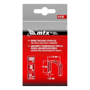 Especificações Forma: Semicircular Material: Aço Carbono País de Fabricação: China Altura: 14mm Embalagem: 1000 unidades Espessura/Diâmetro: 1mm Largura: 7mm Peso sem embalagem: 0.16g por grampo Peso total: 0.16kg Dimensões da embalagem: 20mm (altura) x 120mm (comprimento) x 70mm (largura) Itens Inclusos 1000 Grampos para Grampeador Tipo 36 14mm MTX Perguntas Frequentes (FAQ) Pergunta: Qual o tipo de grampeador compatível com estes grampos?