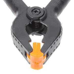 Fabricado em polipropileno, possui mordentes plásticos articulados para maior aderência a superfície, dentes na base para melhor fixação do grampo, e cabo com sistema de mola que proporciona ainda mais pressão.