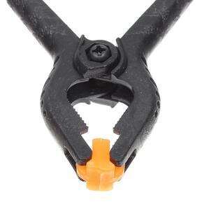 Fabricado em polipropileno, possui mordentes plásticos articulados para maior aderência a superfície, dentes na base para melhor fixação do grampo, e cabo com sistema de mola que proporciona ainda mais pressão.
