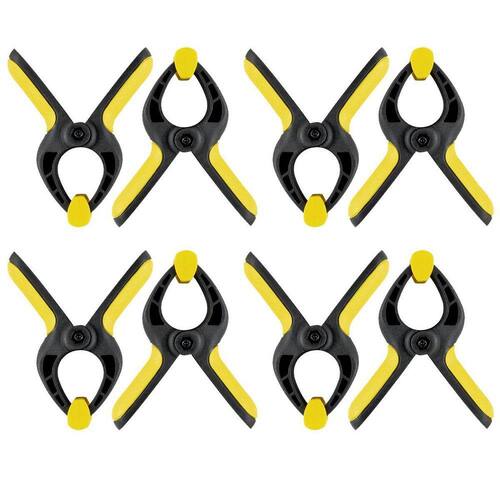 Cada grampo possui tamanho de 6 polegadas 150mm e abertura máxima aproximada de 68mm. Feito em fibra de nylon, o grampo é resistente à ferrugem e leve, garantindo durabilidade e facilidade no manuseio. Seus punhos texturizados proporcionam firmeza ao segurar, tornando as atividades de furar, serrar, colar ou parafusar mais seguras e precisas.