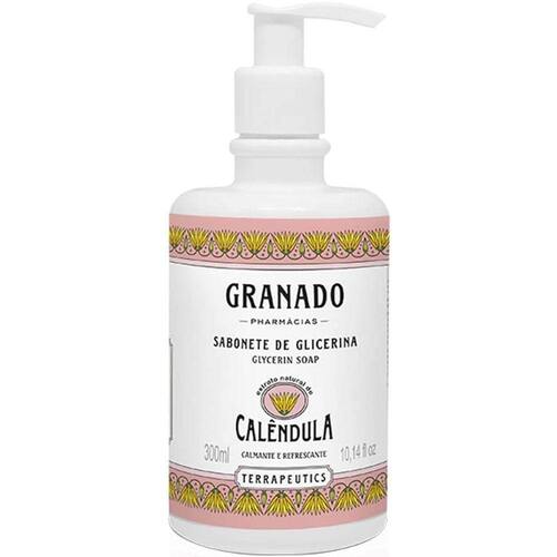 GRANADO SABONETE LIQUIDO 300ml CALENDULA GLICERINA Formulado com pH da pele, glicerina vegetal e alta concentração de extrato natural de calêndula, que acalma a pele. Limpa suavemente a pele, deixando-a macia e perfumada. Fórmula biodegradável. Livre de parabenos e ingredientes de origem animal. Conteúdo: 300ml.