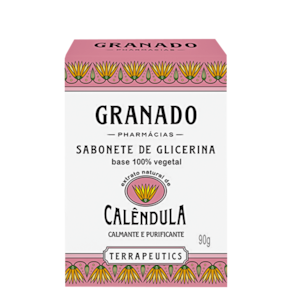 Sabonete em barra para todos os tipos de pele. Limpa delicadamente o corpo proporcionando hidratação, maciez e toque aveludado. Granado Terrapeutics Calêndula Sabonete de Glicerina é um hidratante natural, com base 100% vegetal, que tem propriedades calmantes e purificantes.